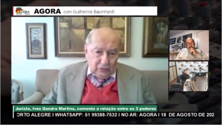 JORNAL AGORA com Guilherme Baumhardt – RÁDIO GUAÍBA Entrevistado: *Ives Gandra Martins* Assunto: “Relação entre os 3 Poderes” Exibido em: 18/08/2021