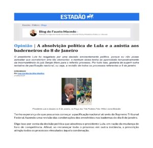 “A ABSOLVIÇÃO POLÍTICA DE LULA E A ANISTIA AOS BADERNEIROS DO 8 DE JANEIRO” – ESTADÃO/BLOG DO FAUSTO MACEDO – 27/08/2024