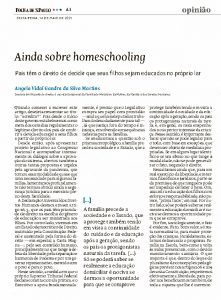 “Ainda sobre homeschooling”
