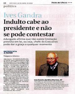 INDULTO CABE AO PRESIDENTE E NÃO SE PODE CONTESTAR – FOLHA DE S. PAULO – 24/04/22