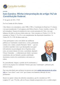 “MINHA INTERPRETAÇÃO DO ARTIGO 142 DA CONSTITUIÇÃO FEDERAL” – ARTIGO CONJUR