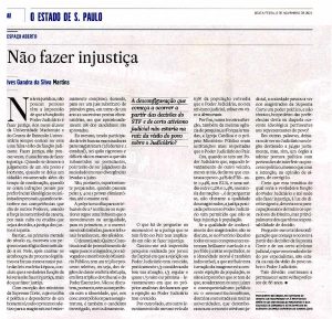 Artigo de autoria do Dr. Ives Gandra da Silva Martins, publicado no jornal O Estado de S. Paulo do dia 05/11/2021.