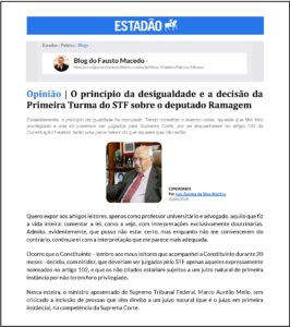 “O PRINCÍPIO DA DESIGUALDADE E A DECISÃO DA PRIMEIRA TURMA DO STF SOBRE O DEPUTADO RAMAGEM“ – ESTADÃO/BLOG DO FAUSTO MACEDO – 20/05/2025