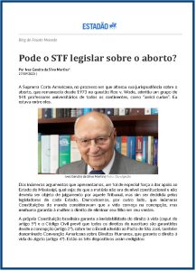 Artigo escrito pelo jurista Dr. Ives Gandra da Silva Martins, publicado no Blog do Fausto Macedo/Estadão, no dia 27/09/2023.