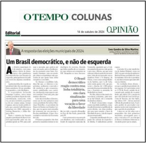Artigo escrito pelo Dr. Ives Gandra da Silva Martins, publicado no site do jornal O Tempo, no dia 14/10/2024.