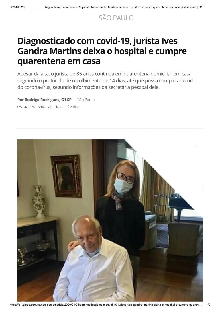 Notícia publicada no site do Portal R7 no dia 08/03/21, conta com a participação do Dr. Ives Gandra. “Especialistas ouvidos pelo R7 acreditam que análise da matéria deveria ter sido feita pelo plenário do Supremo Tribunal Federal” Link de acesso ao site…