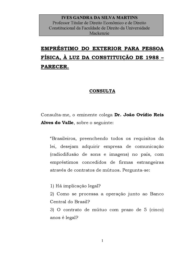 Data: 24/09/1992 Fonte: Martins, Ives Gandra da Silva. A Constituição aplicada, v. 12, Belém: CEJUP, 1998. p. 9-28 Consulta: 1) Pode a consulente realizar contratos diretamente com as empreiteiras detentoras de terrenos, que são transferidos à consulente, mediante financiamento da…