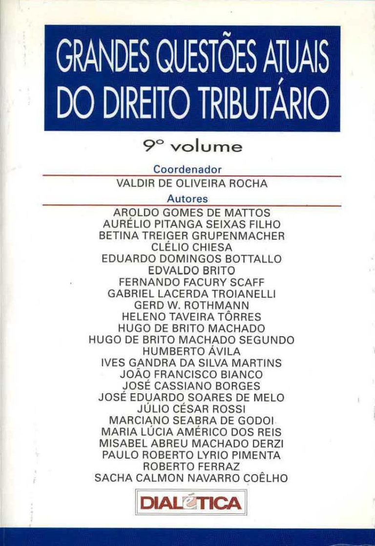 Outras Informações: Tipo do documento: Livro Apresentação: Ives Gandra da Silva Martins Título: Questões atuais de direito tributário Imprenta: Belo Horizonte : Del Rey Ano de publicação: 1998 ISBN: 85-7308-259-3 Idioma: português