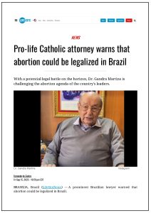 PRO-LIFE CATHOLIC ATTORNEY WARNS THAT ABORTION COULD BE LEGALIZED IN BRAZIL – LIFE SITE NEWS – INGLÊS
